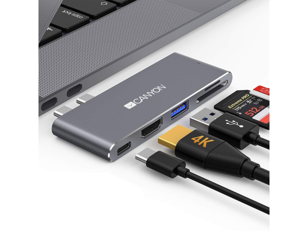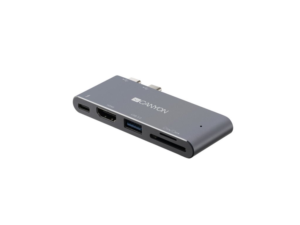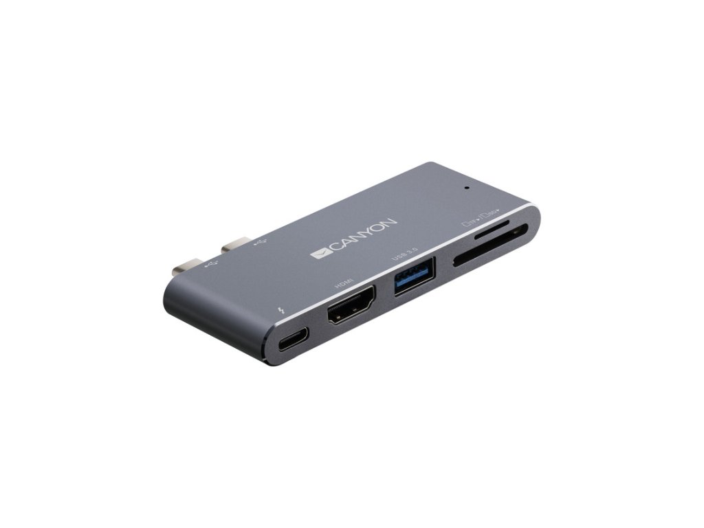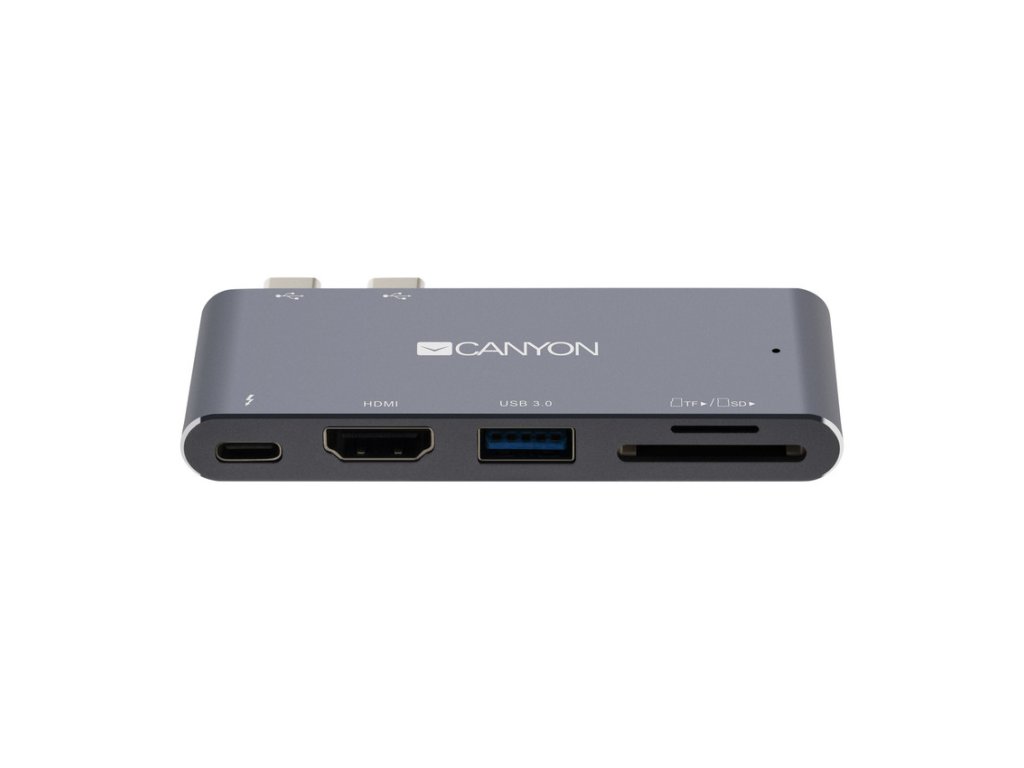 Canyon dokovací stanice Thunderbolt 3, 5 v 1HDMI port umožňuje vysoce kvalitní přenos obrazu ve formátu 4k. Rozhraní Thunderbolt 3 umožňuje přenos dat, nabíjení zařízení a přenos videa optimální rychlostí. Port USB A 3.0 zabezpečí maximální rychlost přenosu dat 5 Gb/s. Možnosti zařízení rozšiřují čítačky karet SD a TF. Tento hliníkový rozbočovač je dokonalým doplňkem k nejnovějším modelům počítačů MacBook Pro/Air nejen z hlediska funkcí, ale i designu.