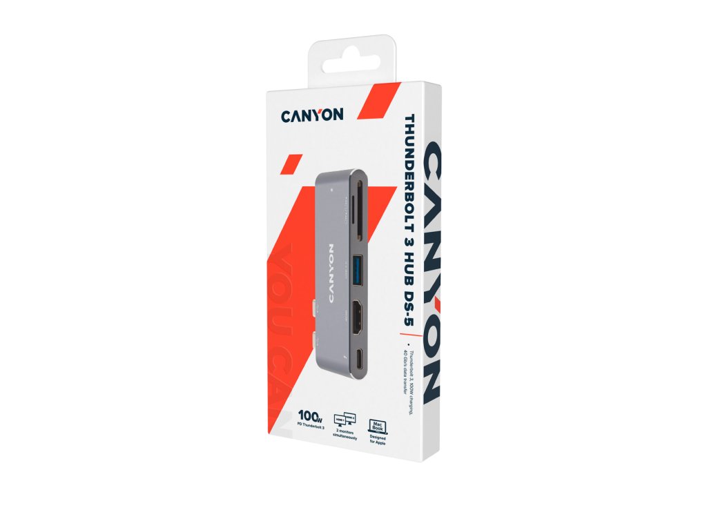 CANYON replikátor portů DS-5, 5v1, pro Apple Mackbook s Thunderbolt 3 (USB-C 100W)