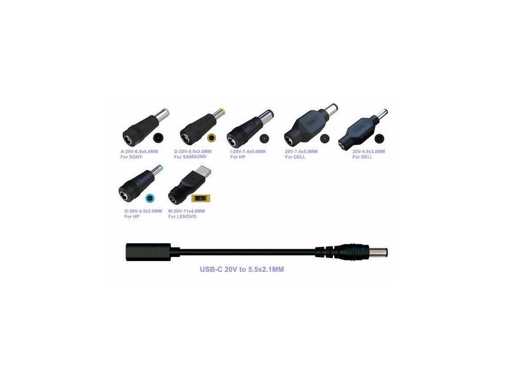 Koncovky pro AD-716Type-C konvertor + 7 koncovek:A: 20V 6,5 x 4,4 mm pro Sony