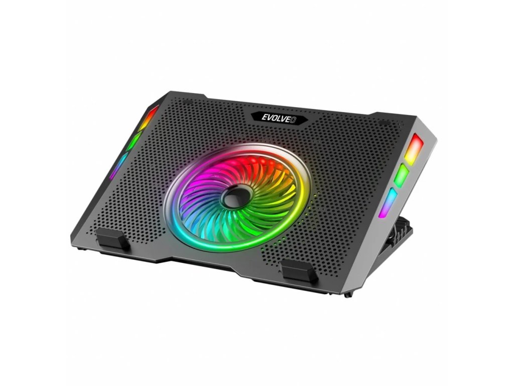 EVOLVEO Ania 16 RGB disponuje jedním 125mm a čtyřmi 70mm ventilátory, které jsou vhodné pro chlazení herních notebooků. Rychlost 125mm ventilátorů může dosáhnout až 1400RMP a 70mm ventilátorů dokonce až 2500RPM.