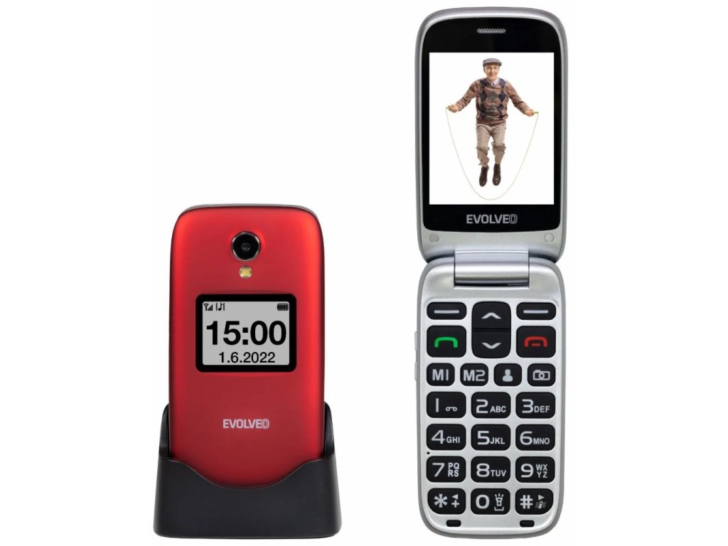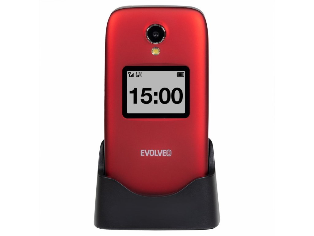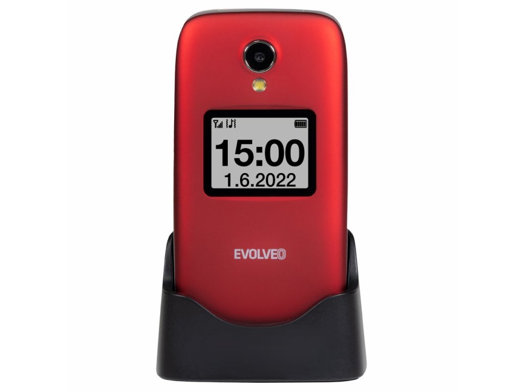 EVOLVEO EasyPhone XO, mobilní telefon pro seniory s nabíjecím stojánkem (červená barva)• Přehledné a jednoduché menu