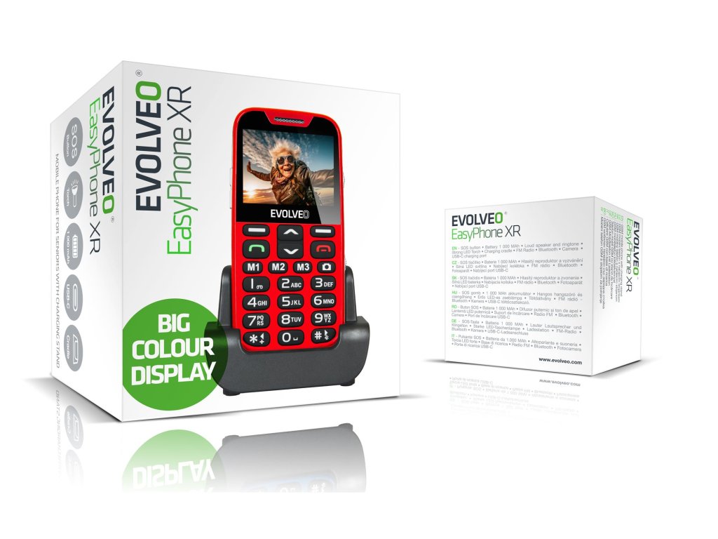 EVOLVEO EasyPhone XR, mobilní telefon pro seniory s nabíjecím stojánkem, červená• Přehledné a jednoduché menu