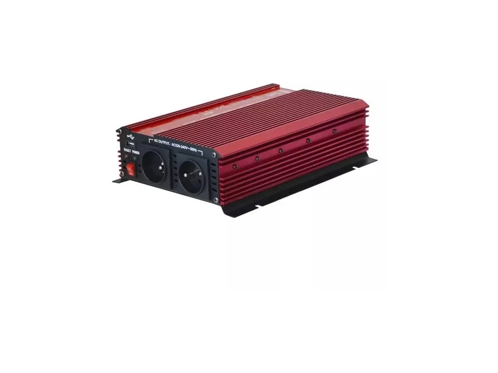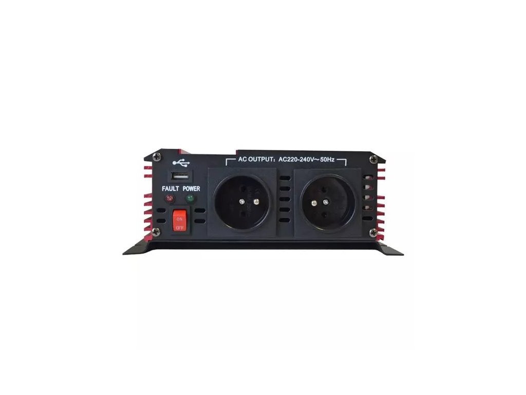 Invertor - Měnič vytváří ze stejnosměrného napětí 12V střídavé napětí 230V . To umožňuje připojení nejrůznějších spotřebičů 230 V ke zdroji napětí jako např. v autě, na člunu, u solárních zařízení na chatách nebo při kempování. Ideální pro připojení digitální kamery, mobilního telefonu, notebooku, tiskárny, lampy, CD/DVD přehrávače, rádia atd s maximálním příkonem do 1600W. Měnič je rovněž vybaven USB výstupem pro napájení různých zařízení přes rozhraní typu USB 2.0 . Přístroj obsahuje ochranu proti opačné polaritě, nízkému/vysokému napětí, zkratu, přetížení, přehřátí a vysokému/nízkému napětí baterie. Zvlnění výstupního napětí má tvar modifikované sinusoidy.Nesmí se používat pro el. točivé stroje ( asynchronní motory ,oběhová čerpadla, okružní pily, frézky,atd.