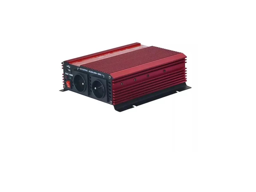 Invertor - Měnič vytváří ze stejnosměrného napětí 12V střídavé napětí 230V . To umožňuje připojení nejrůznějších spotřebičů 230 V ke zdroji napětí jako např. v autě, na člunu, u solárních zařízení na chatách nebo při kempování. Ideální pro připojení digitální kamery, mobilního telefonu, notebooku, tiskárny, lampy, CD/DVD přehrávače, rádia atd s maximálním příkonem do 1000W. Měnič je rovněž vybaven USB výstupem pro napájení různých zařízení přes rozhraní typu USB 2.0 . Přístroj obsahuje ochranu proti opačné polaritě, nízkému/vysokému napětí, zkratu, přetížení, přehřátí a vysokému/nízkému napětí baterie. Zvlnění výstupního napětí má tvar modifikované sinusoidy.Nesmí se používat pro el. točivé stroje ( asynchronní motory ,oběhová čerpadla, okružní pily, frézky,atd.)