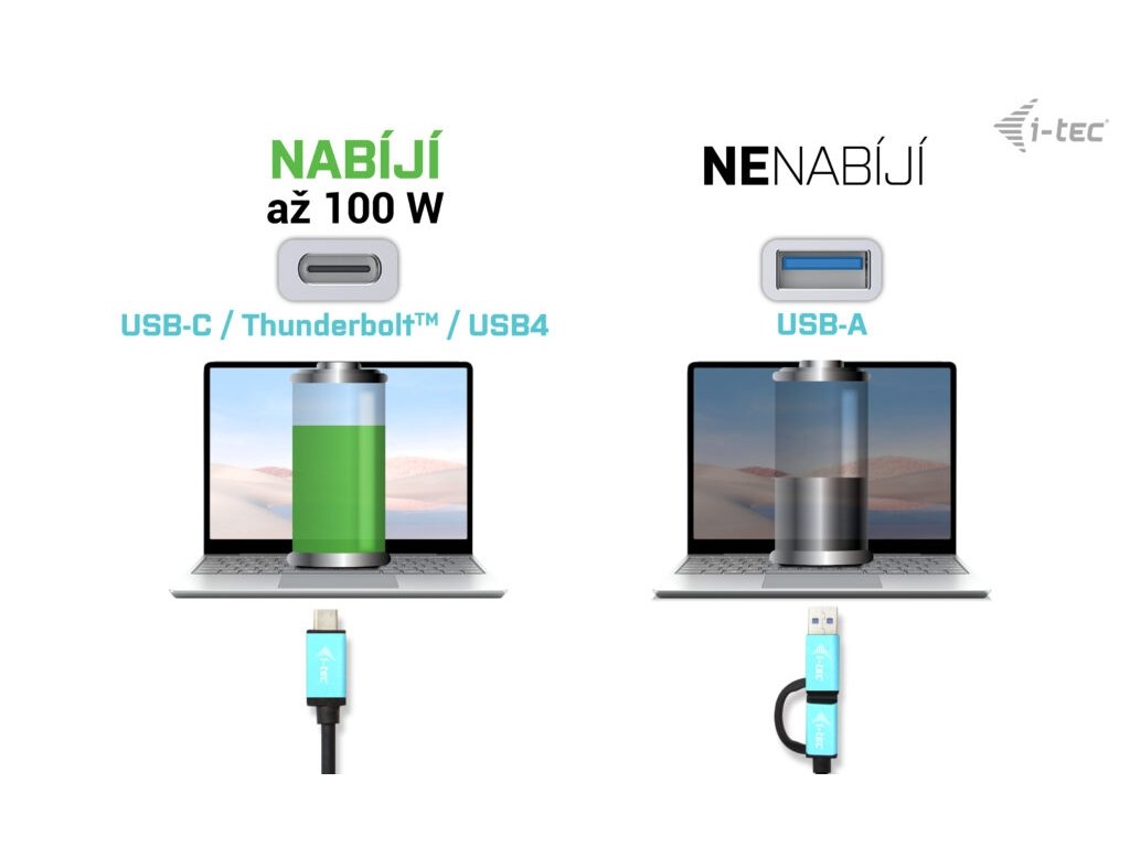 V případě, že je dokovací stanice připojena přes USB 3.0, nabíjení notebooků a tabletů nepodporuje