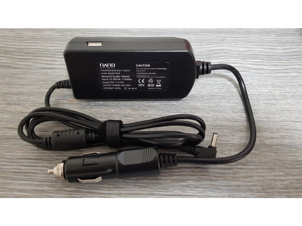 Autoadaptér určený pro notebooky s max. příkonem 90W. Konetor autoadaptéru je určen zejména pro novější modely notebooků značky Asus. Díky rozsahu vstupního napětí od 11 do 28V DC je vhodný i pro použití v kamiónech. Car adapter rovněž umožňuje nabíjet různá zařízení přes vestavěný USB konektor.Max. Výkon: 90W